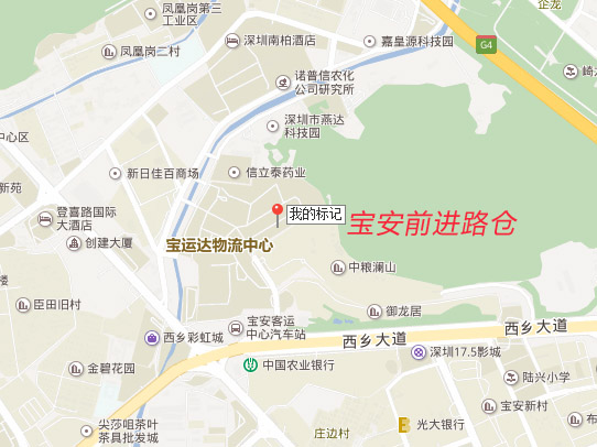 仓库地址:中国深圳市宝安区宝源南路和新安六路交汇处(深业新干线附近)