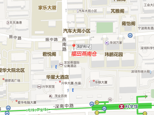 仓库地址:中国深圳市福田区振中路和燕南路交汇处(汽车大宛内)